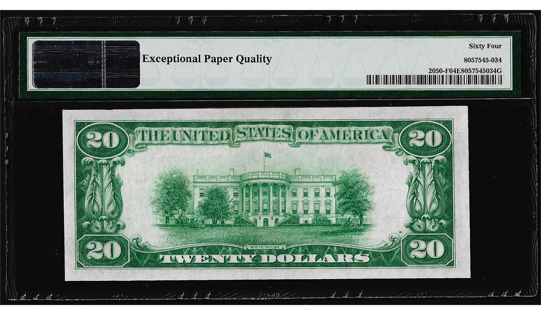 One 1928 $20 Federal Reserve Note Atlanta Fr.2050-F PMG Choice Uncirculated 64EPQ. PMG Certified.