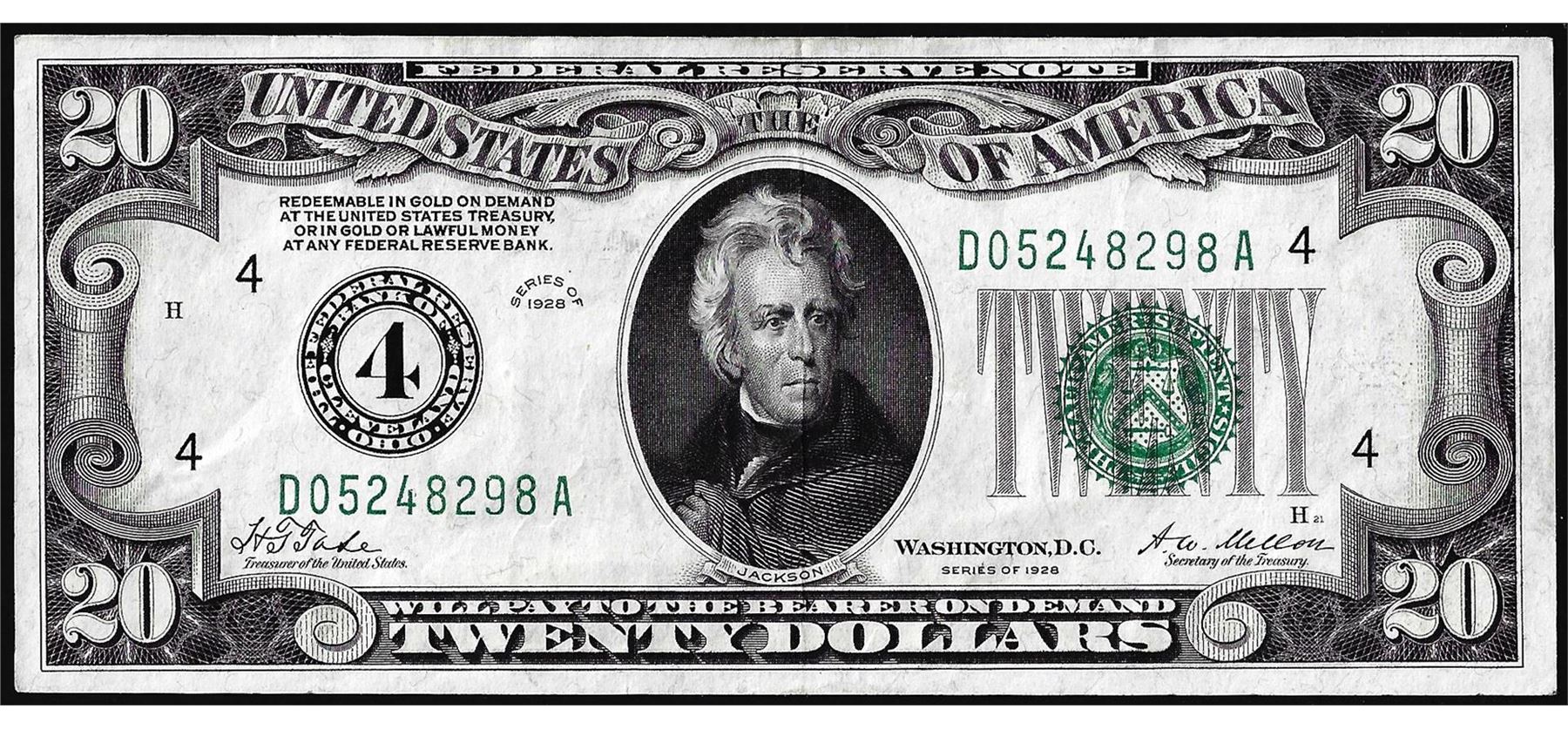 One 1928 $20 Federal Reserve Note Cleveland.