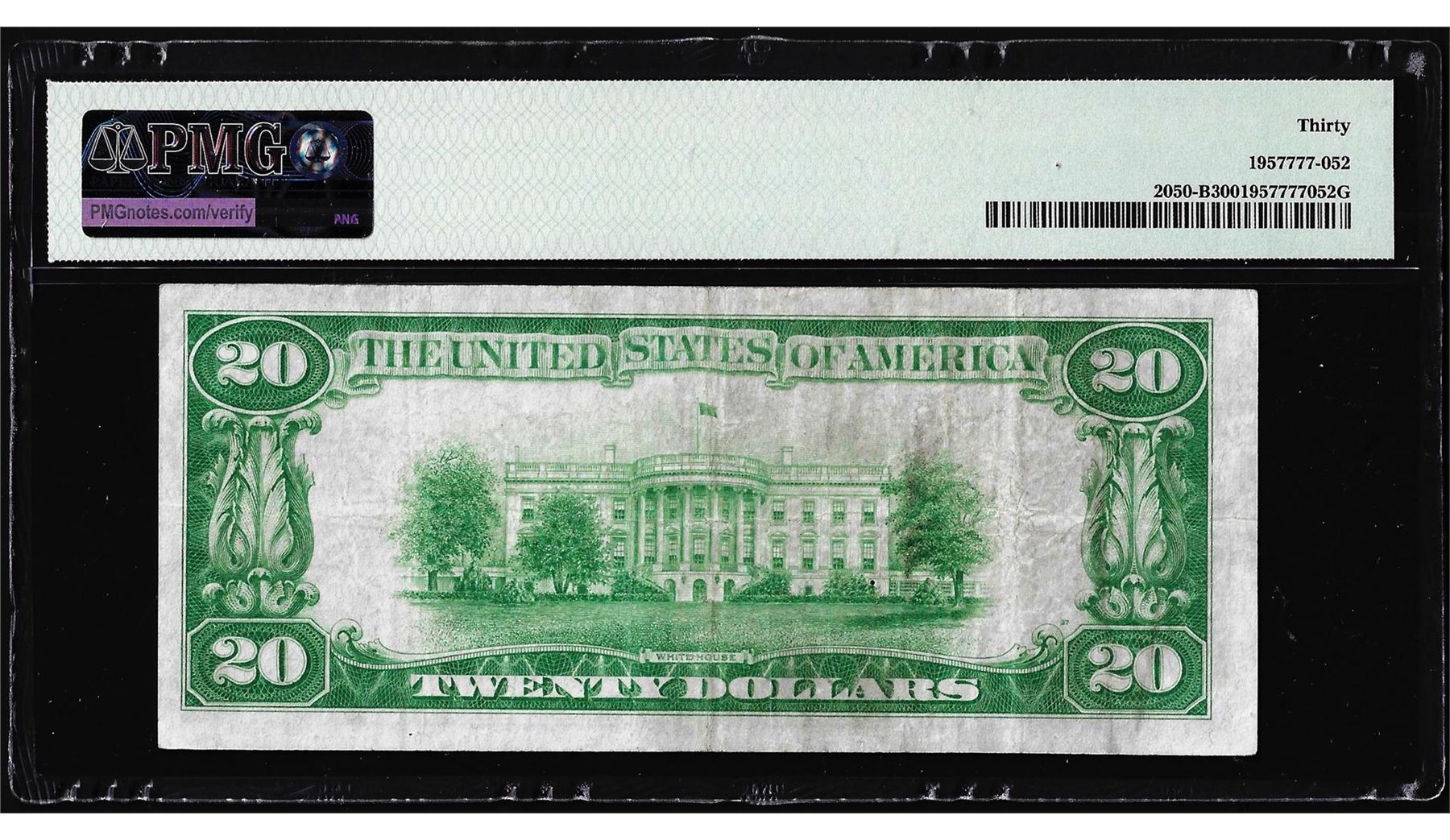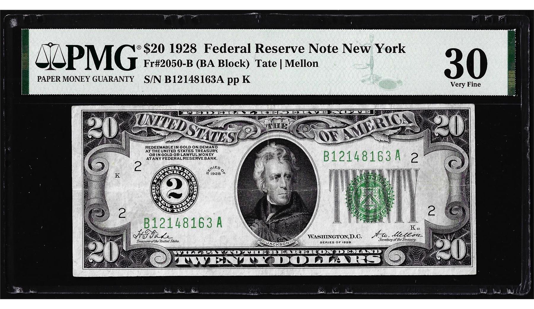1928 $20 Federal Reserve Note New York Fr.2050-B PMG Very Fine 30