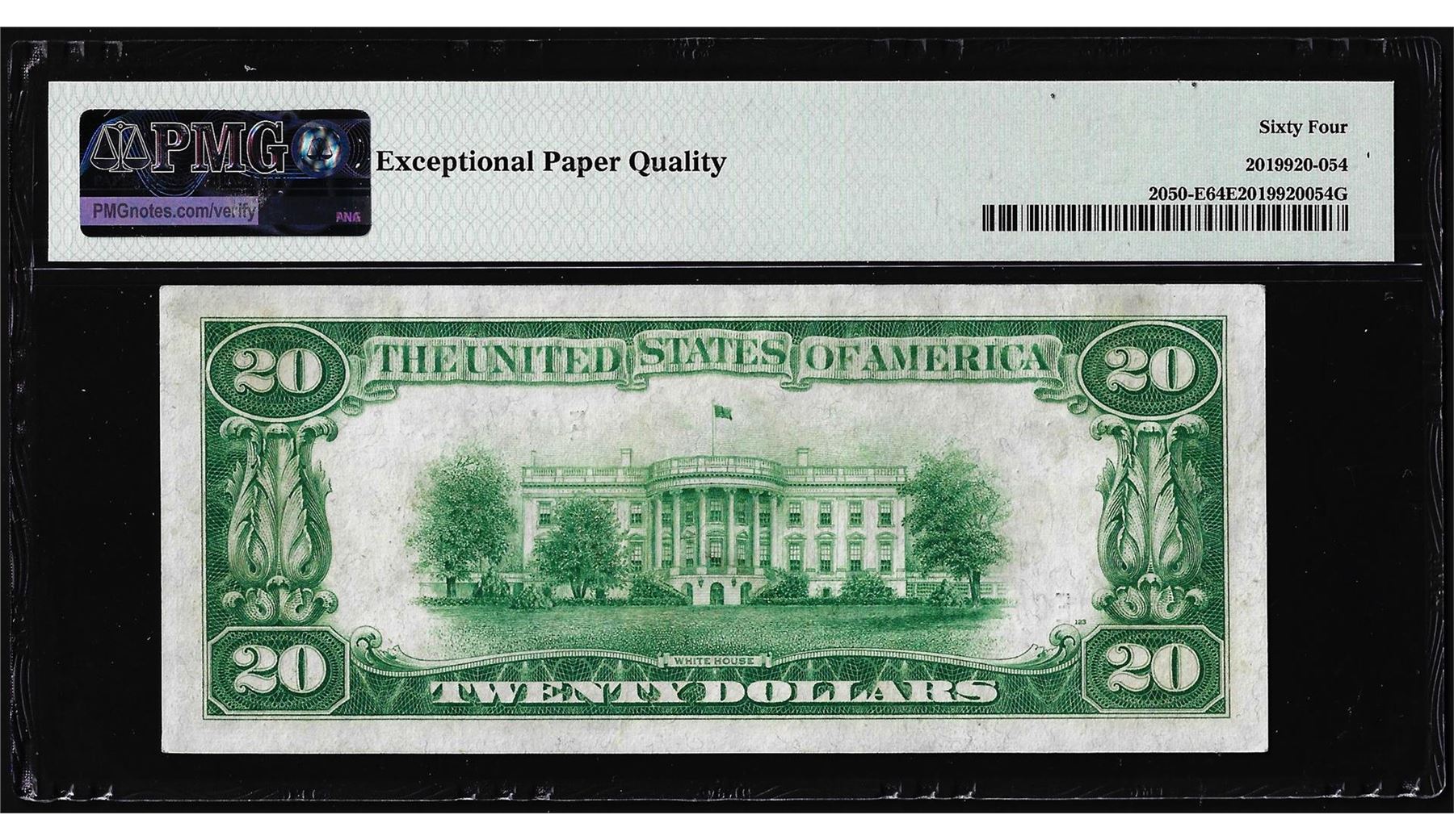 One 1928 $20 Federal Reserve Note Richmond Fr.2050-E PMG Choice Uncirculated 64EPQ. PMG Certified.