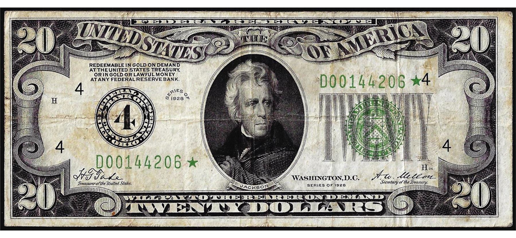 One 1928 $20 Federal Reserve STAR Note Cleveland.