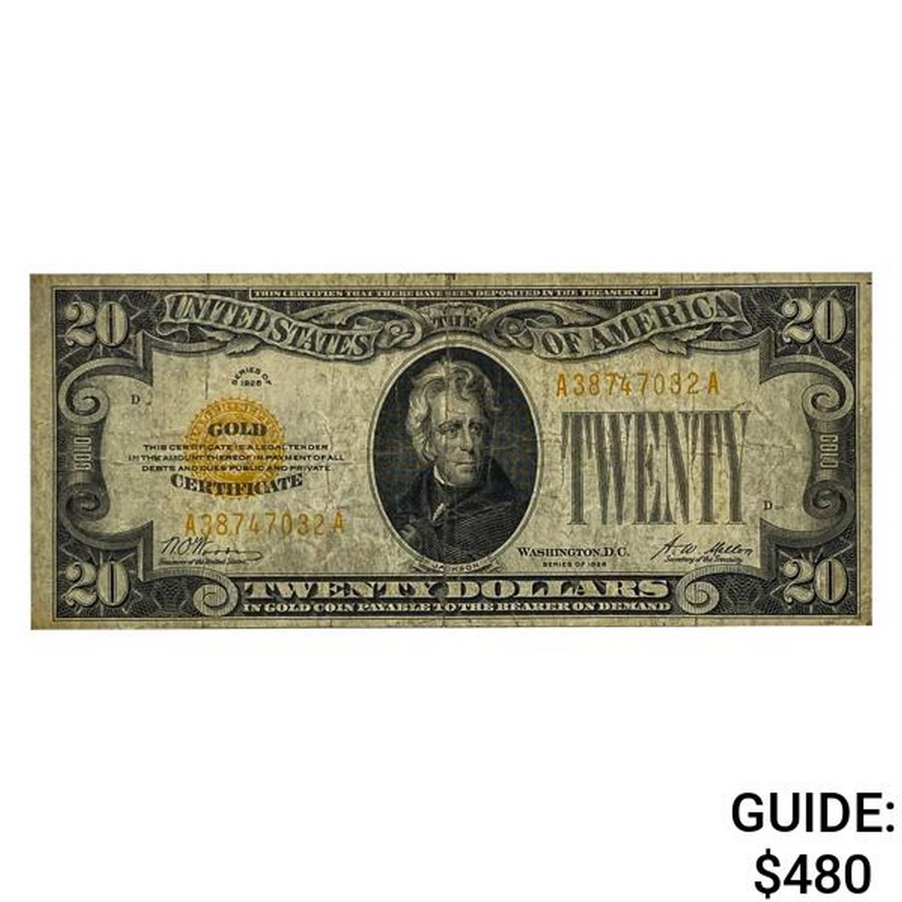 1928 $20 GOLD CERTIFICATE NOTE VERY FINE