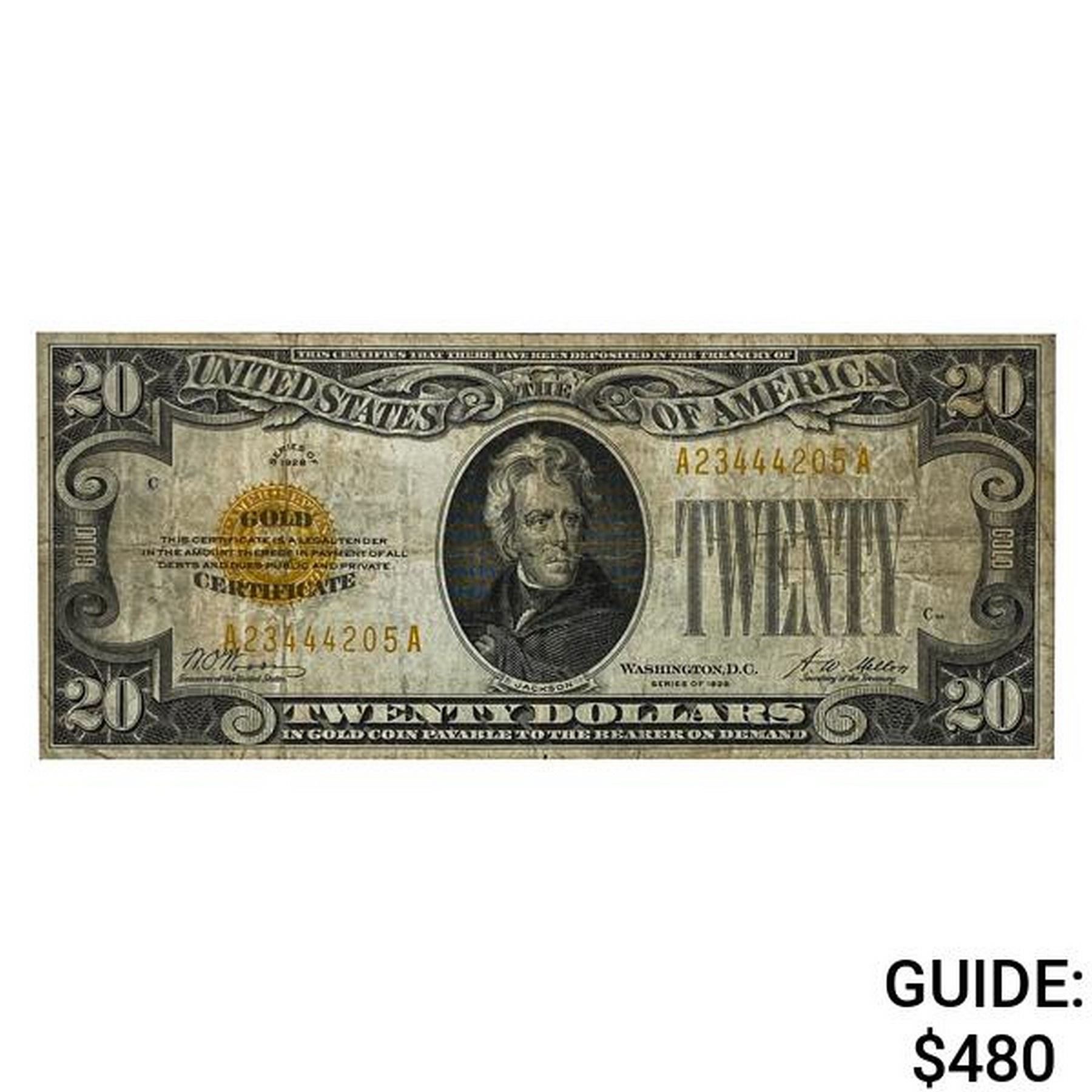 1928 $20 GOLD CERTIFICATE NOTE VERY FINE