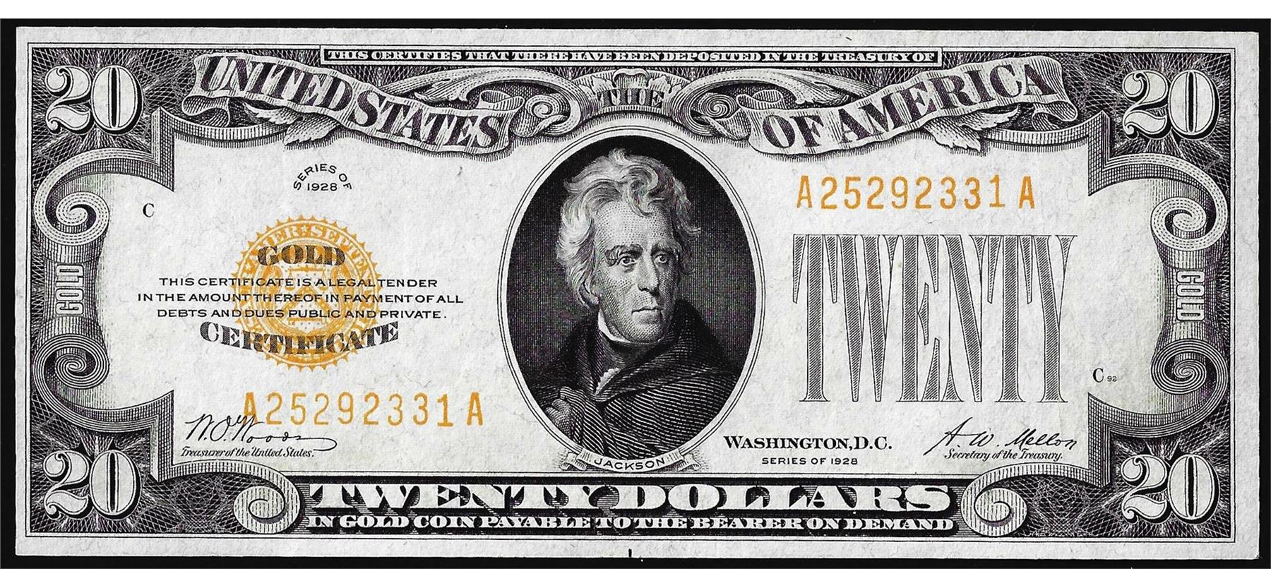 One 1928 $20 Gold Certificate Note.