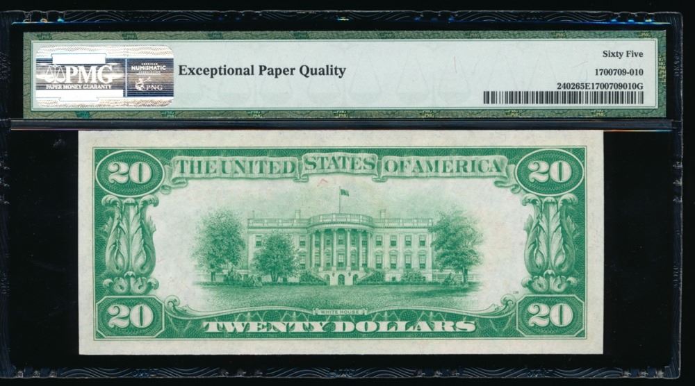 One 1928 $20 Gold Certificate PMG 65EPQ.