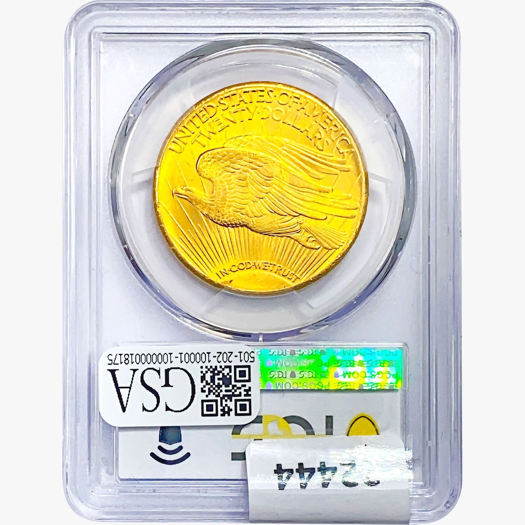 f. Notes sold referencing a third-party grading service are sold “AS IS” without any express or implied warranty, except for guarantee by GSA that they are genuine. Grading, condition or other attributes of any Product may have a material effect on its value and the opinion of others, including third-party grading services such as PCGS Currency and PMG may differ with that of GSA. GSA shall not be bound by any prior or subsequent opinion, determination, or certification by any grading service. Bidders specifically waive any claim to right of return of any Product because of the opinion, determination, or certification, or lack thereof, by any grading service. Certain warranties may be available from the grading services and Bidders are referred to them for further details: Paper Money Guaranty (PMG), PO Box 4711, Sarasota, FL 34230; PCGS Currency, PO Box 10470, Peoria, IL 61612-0470; PCGS Gold Shield, PO Box 9458, Newport Beach, CA 92658. Third-party graded notes are not returnable for any reason whatsoever.