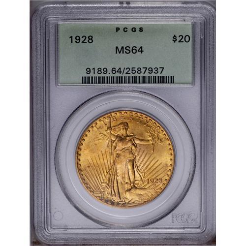 <B>1928<$20> MS64 PCGS.</B></I> A beautiful lemon-gold near-Gem with uncommonly clean fields. The eagle is also unmarked. A few tiny marks are concealed on Liberty's drapery, but these do not appear to limit the grade.