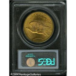 1928 $20 MS64 PCGS. Booming mint luster and bright <B>1928 $20 MS64 PCGS.</B></I> Booming mint luster and bright canary-gold color confirm the eye appeal of this original near-Gem. A few speckles of golden-brown color separate AR in DOLLARS. The date and the designer's monogram are lightly die doubled. <BR><BR><B>Important notice:</B> Heritage usually auctions material at the rate of 200-250 lots per hour. On some occasions eBay Live bid software or the Internet may not be able to keep up with the pace of the auction. We recommend placing a realistic absentee bid now as insurance to avoid disappointment. Occasionally the auctioneer may eliminate or reject an eBay Live bid, and the auctioneer may also reopen a lot after the close of the eBay live bidding (usually because we missed an audience bid), and may reject your bid even if it shows you as the winning bidder. By bidding via eBay Live, you agree that Heritage may award the lot to another bidder at its sole discretion under the circumstances described above or any other reasonable circumstances. Since eBay bids are not shown to us until we open the lot on the floor, we treat those bids just like floor bids. In most cases the floor responds before the eBay bid is presented to us, due to Internet lag time, so for consistency we have made it a policy that floor bids are always considered first over tie eBay live bids. Also please note that all Heritage lots purchased through eBay Live carry a 20% Buyer's Premium. Please make sure you read the Terms and Conditions before you bid. This lot is being auctioned in conjunction with a live floor auction by Heritage Galleries & Auctioneers. All final auction and invoice information will be supplied by Heritage Galleries & Auctioneers, and all other information should be considered preliminary. Lot:7260