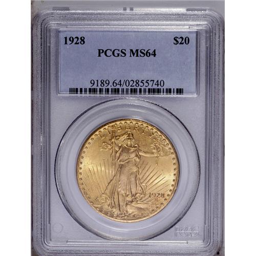 <B>1928<$20> MS64 PCGS.</B></I> Exceptionally appealing with smooth, frosty surfaces that reveal no significant distractions.