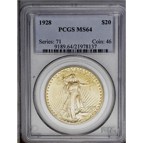 1928 $20 MS64 PCGS. Lightly marked on the obverse, but