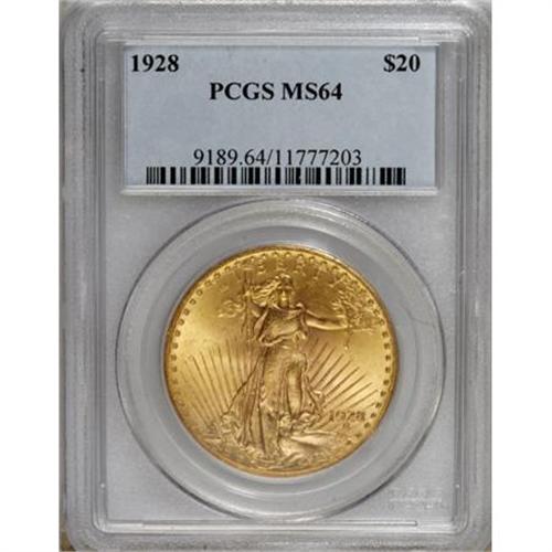 <B>1928 $20 MS64 PCGS.</B></I> PCGS Population (10008/8086). NGC Census: (12109/5359). Mintage: 8,816,000. Numismedia Wsl. Price for NGC/PCGS coin in MS64: $840. (#9189)<BR><BR><B>Coin Engraver:</B> Augustus Saint-Gaudens<BR><BR><b>Shipping:</b> Coins & Currency (<a target="_blank" href="http://www.heritageauctions.com/common/shipping.php">view shipping information</a>)
