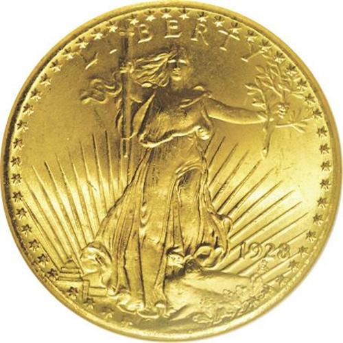<B>1928<$20> MS66 NGC.</B></I> A spectacular, nearly abrasion-free Premium Gem with nice green-gold luster and a strong strike. Rarely found any finer, technically or aesthetically.