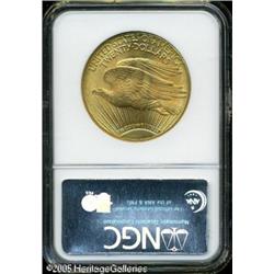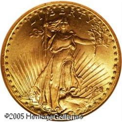 <B>1928 $20 MS66 <img border='0' src='http://www.heritagecoins.com/images/star.gif' width=10 height=10> NGC.</B></I> Fully struck with bright, semi-reflective fields and subtly variegated coloration. Exquisitely preserved and nearly pristine. Certainly deserves the "Star" designation, from NGC, signifying unusually splendid eye appeal. This one will take your breath away. Lot:9755