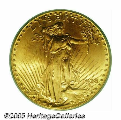 1928 $20 MS66 PCGS. A wonderfully preserved, sati