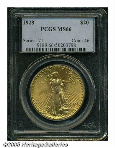 <B>1928<$20> MS66 PCGS.</B></I> A wonderfully preserved, satiny representative that exudes frostiness and originality. Ideal for type purposes.