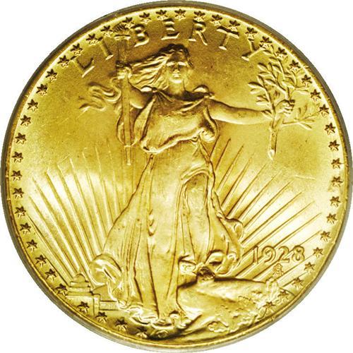 1928 $20 MS66 PCGS. Rich, variegated shades of orange,
