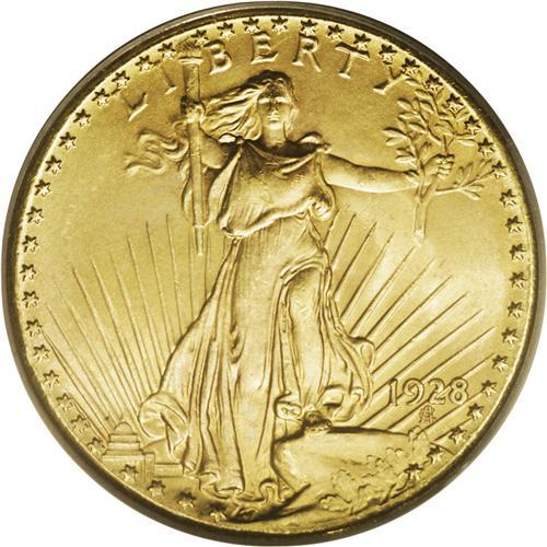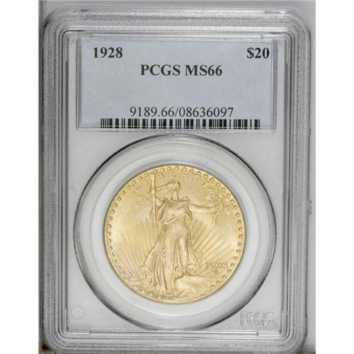 <B>1928<$20> MS66 PCGS.</B></I> The butter-yellow surfaces have interesting green-violet accents in the obverse fields. Minimally marked with delightful luster and a solid strike. If not for a line of tiny luster breaks to the left of Liberty's hair, this appealing example might have received an even higher grade.