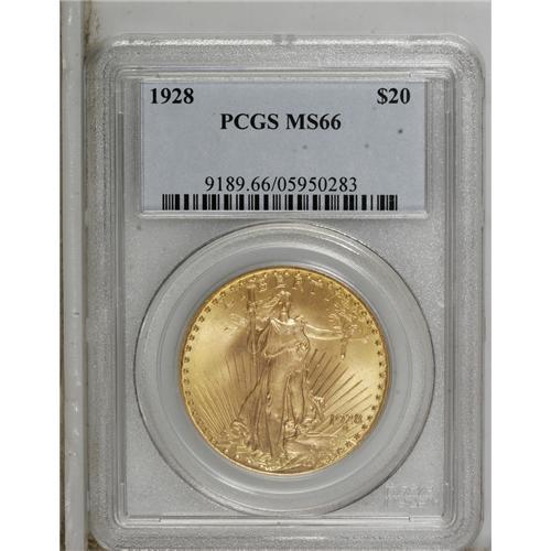 <B>1928 $20 MS66 PCGS.</B></I> The clean, lustrous surfaces of this Premium Gem are a pleasure to behold. Well struck with a soft, frosty sheen and minimal marks.<BR><BR><b>Shipping:</b> Coins & Currency (<a target="_blank" href="http://www.heritageauctions.com/common/shipping.php">view shipping information</a>)
