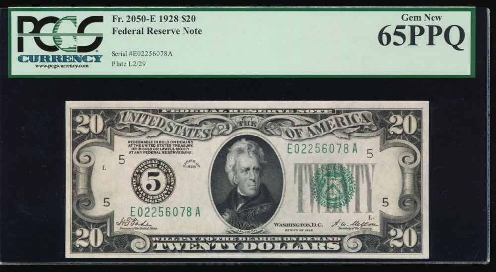 One 1928 $20 Richmond Federal Reserve Note PCGS 65PPQ.
