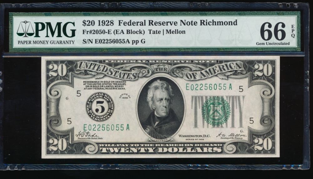 One 1928 $20 Richmond Federal Reserve Note PMG 66EPQ.