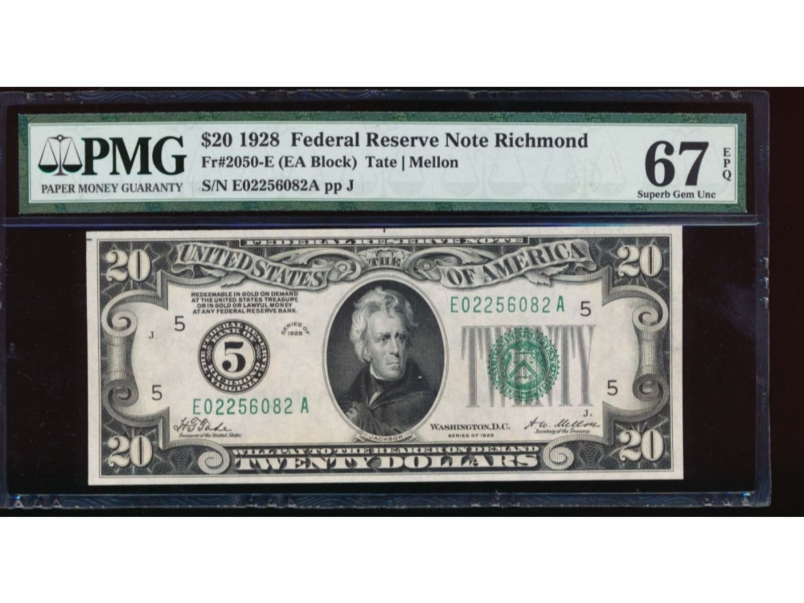 One 1928 $20 Richmond Federal Reserve Note PMG 67EPQ.