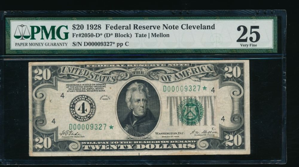 One 1928 $20 STAR Cleveland FRN PMG 25.