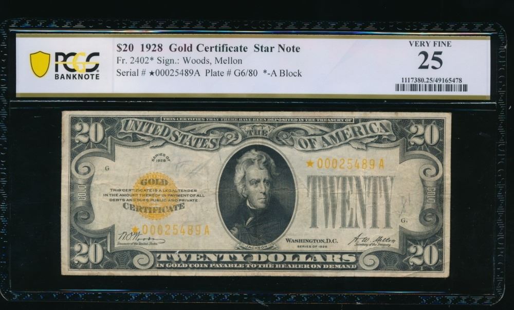 One 1928 $20 STAR Gold Certificate PCGS 25.