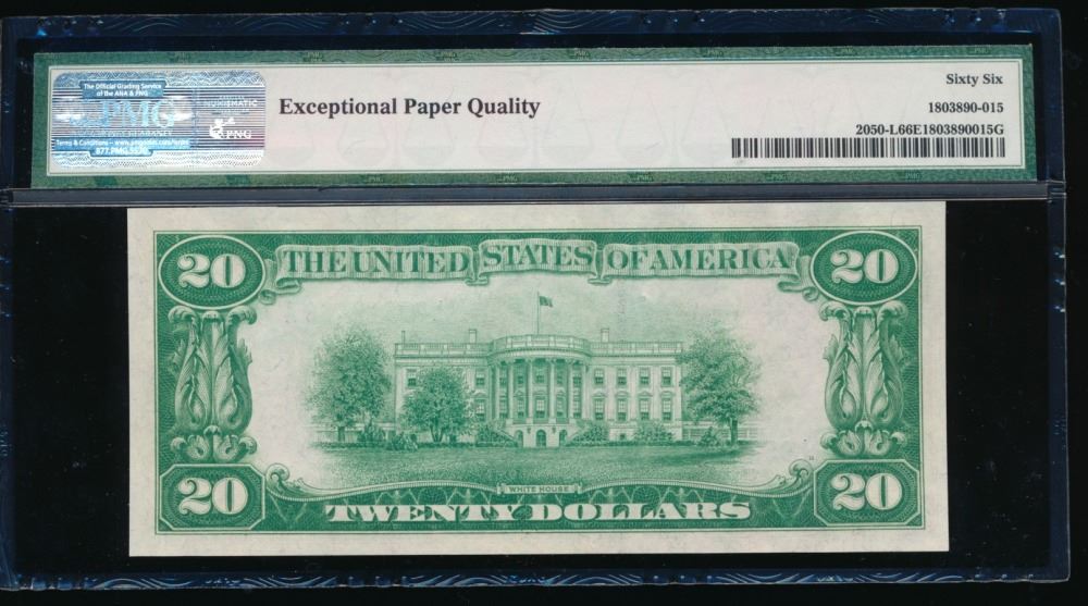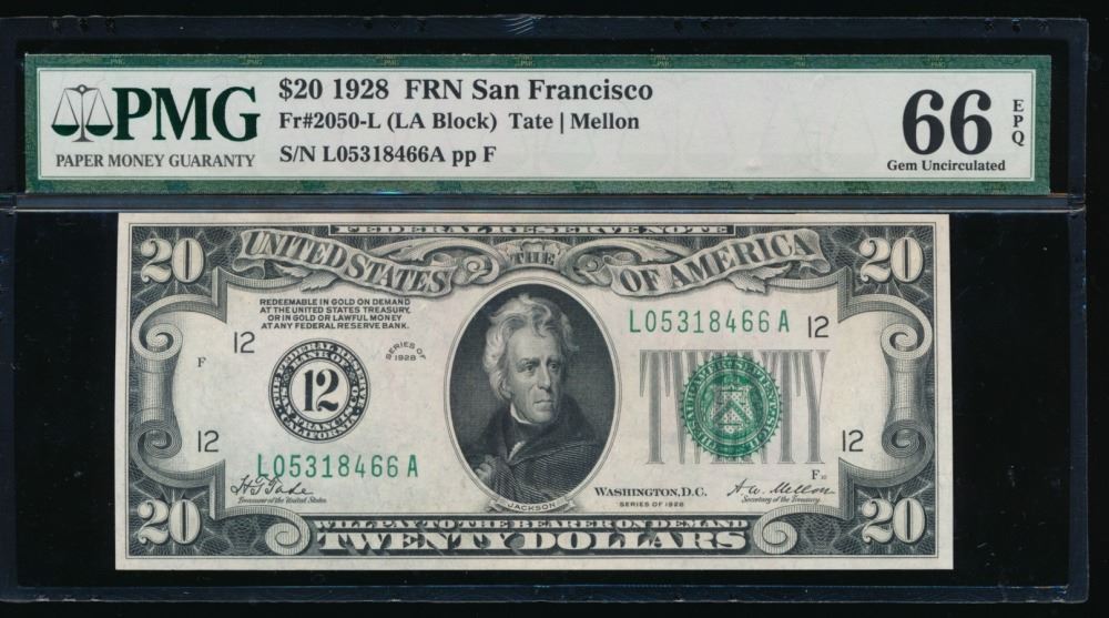 One 1928 $20 San Francisco FRN PMG 66EPQ.