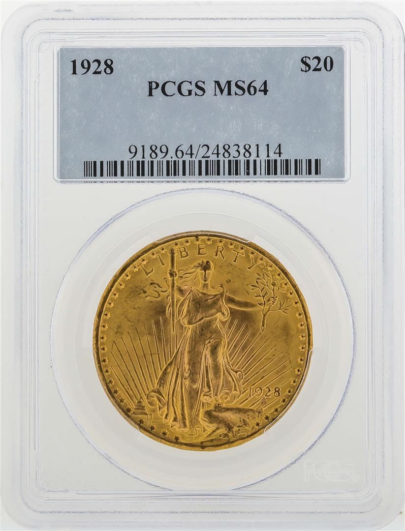 One 1928 $20 St. Gaudens Double Eagle Gold Coin NGC MS64. NGC Certified.