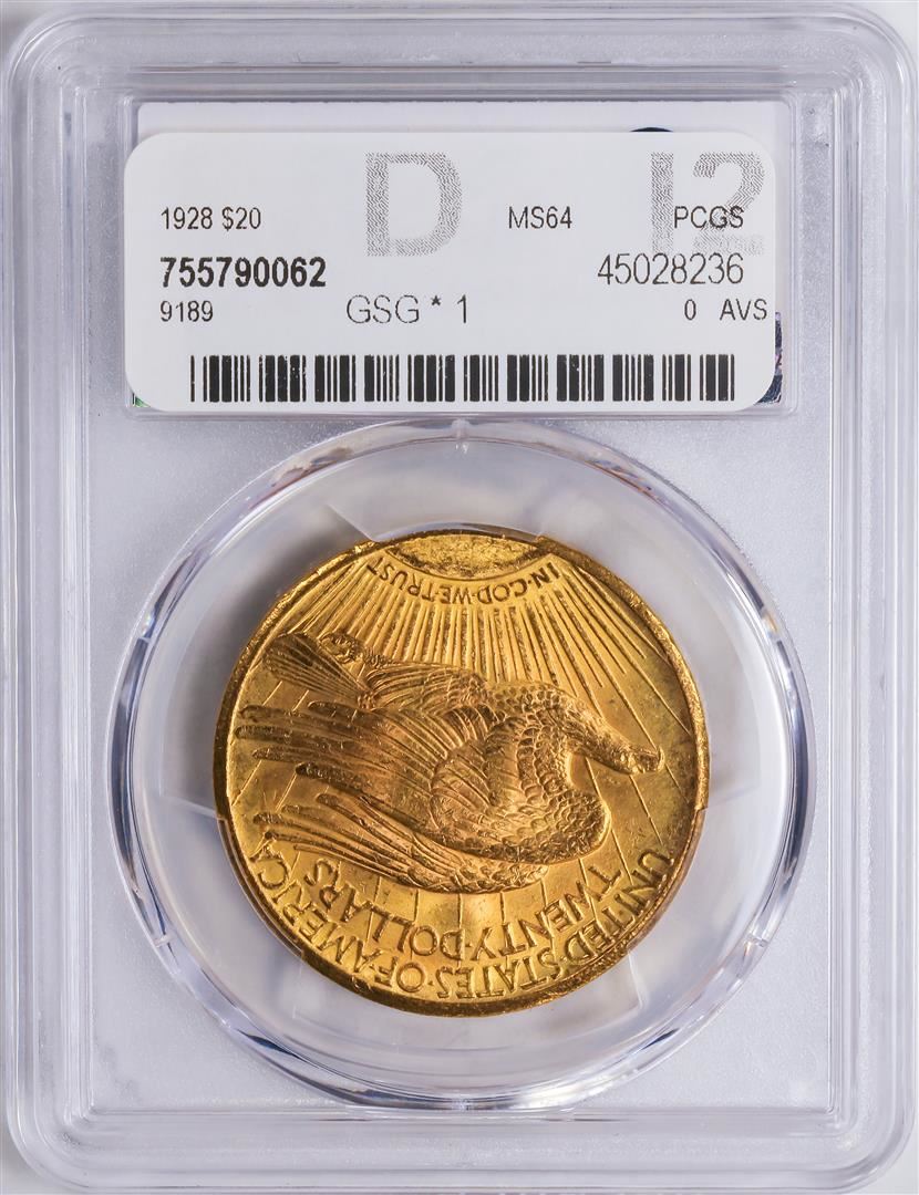 One 1928 $20 St. Gaudens Double Eagle Gold Coin PCGS MS64.