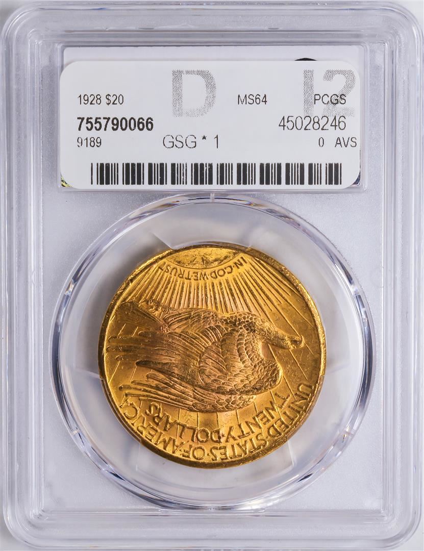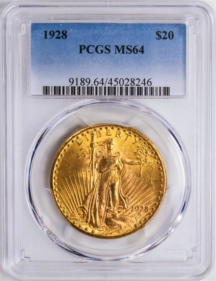 One 1928 $20 St. Gaudens Double Eagle Gold Coin PCGS MS64.