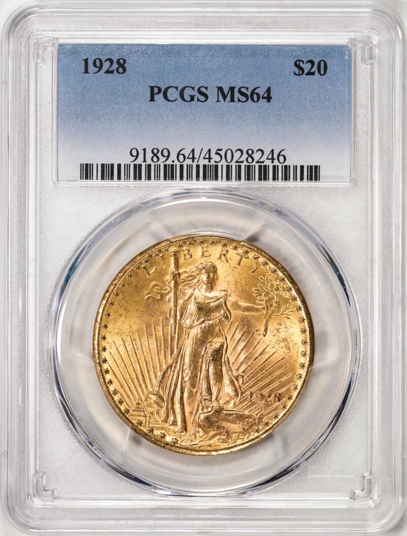 One 1928 $20 St. Gaudens Double Eagle Gold Coin PCGS MS64. PCGS Graded.
