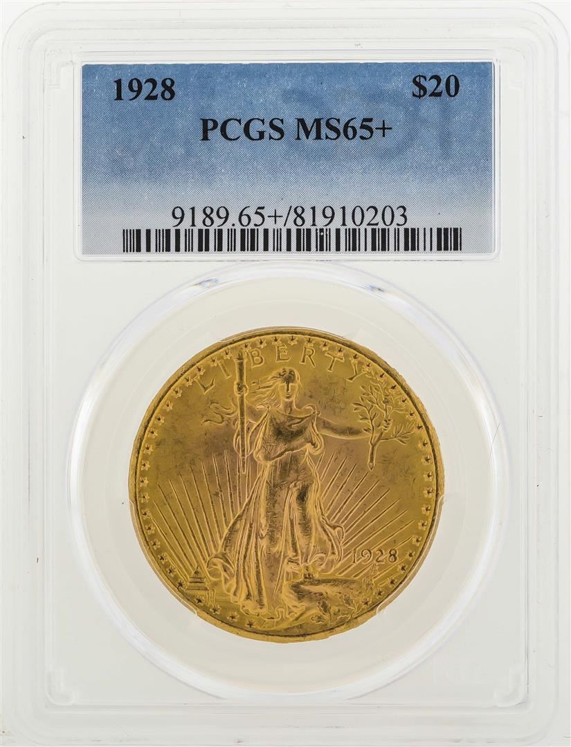 One 1928 $20 St. Gaudens Double Eagle Gold Coin PCGS MS65+. PCGS Graded.