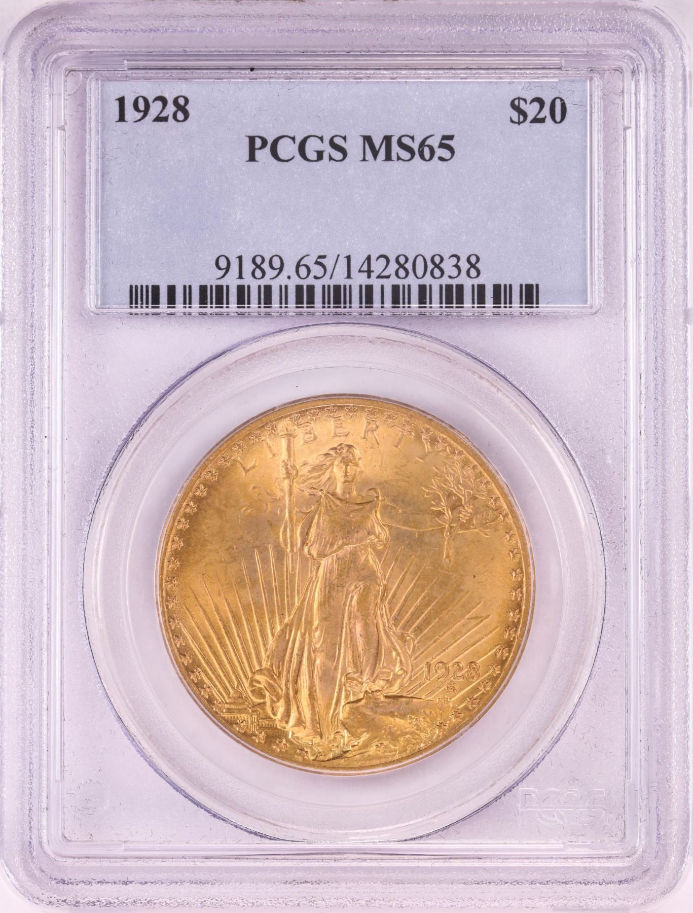 One 1928 $20 St. Gaudens Double Eagle Gold Coin PCGS MS65.