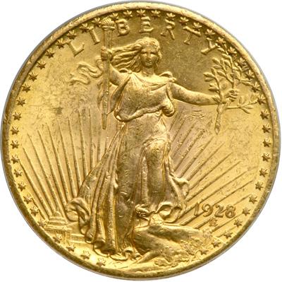 1928 $20 St. Gaudens. PCGS graded MS-62 PQ. Nice golden toning, glowing luster (PCGS # 9189) .