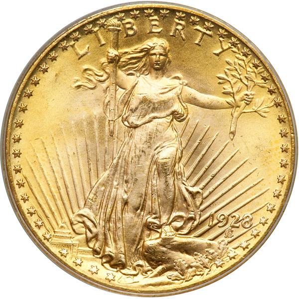 1928 $20 St. Gaudens. PCGS graded MS-66. A lovely well struck example. From an original roll (PCGS # 9189) .