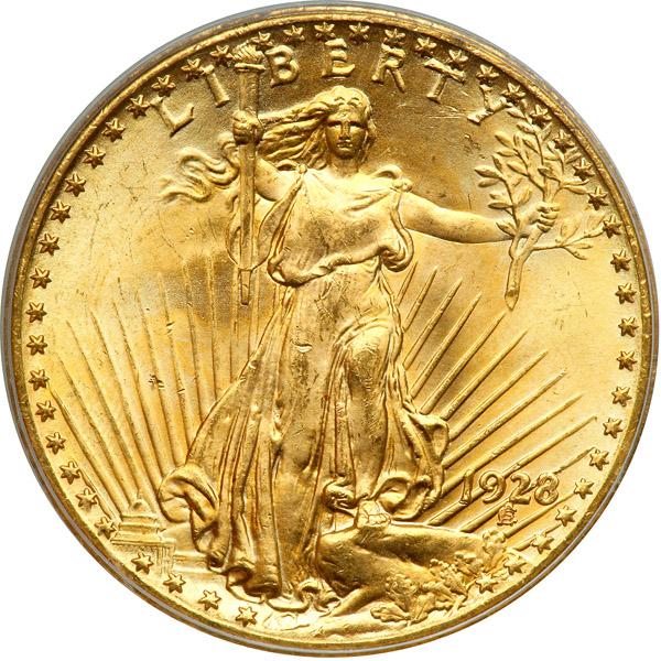 1928 $20 St. Gaudens. PCGS graded MS-65. Lovely toning. From an original roll (PCGS # 9189) .