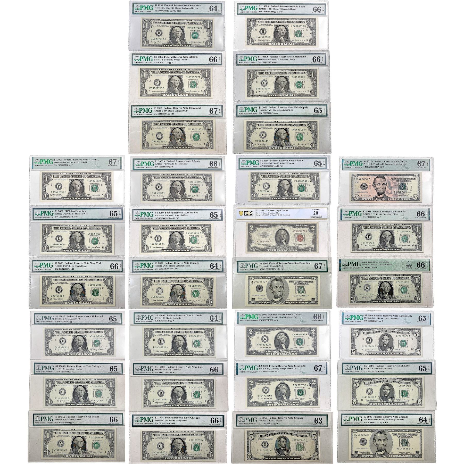 1928-2003 M Varied US Currency Graded and Raw [61 Bills] PCGS AU-MS 50-66