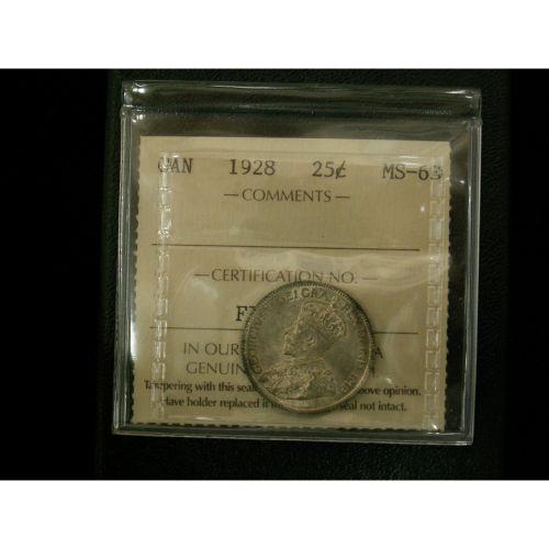 1928 25¢ ICCS MS63, nice lustrous coin