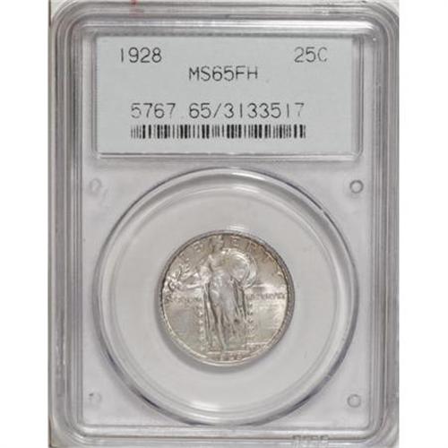 <B>1928 25C MS65 Full Head PCGS.</B></I> A lustrous and impressively unmarked Gem with a boldly struck date and suitable definition on the shield rivets and head. Encapsulated in an old green label holder.<BR><BR><B>Coin Engraver:</B> Hermon A. MacNeil<BR><BR><b>Shipping:</b> Coins & Currency (<a target="_blank" href="http://www.heritageauctions.com/common/shipping.php">view shipping information</a>)