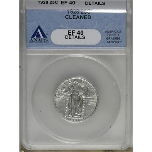 <B>1928 25C --Cleaned--ANACS. XF40 Details.</B></I> NGC Census: (2/446). PCGS Population (2/603). Mintage: 6,336,000. Numismedia Wsl. Price for NGC/PCGS coin in XF40: $26. (#5766)<BR><BR><B>Coin Engraver:</B> Hermon A. MacNeil<BR><BR><b>Shipping:</b> Coins & Currency (<a target="_blank" href="http://www.heritageauctions.com/common/shipping.php">view shipping information</a>)
