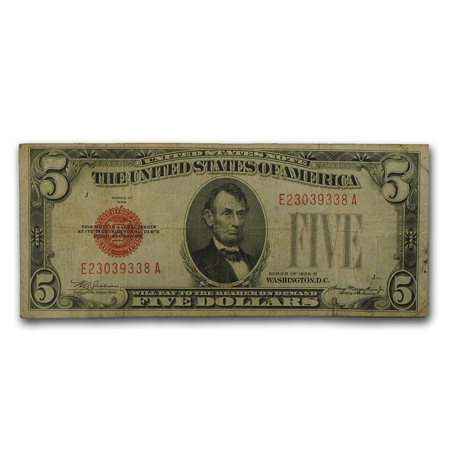 1928-B thru 1928-F $5.00 U.S. Note Red Seal VG/VF