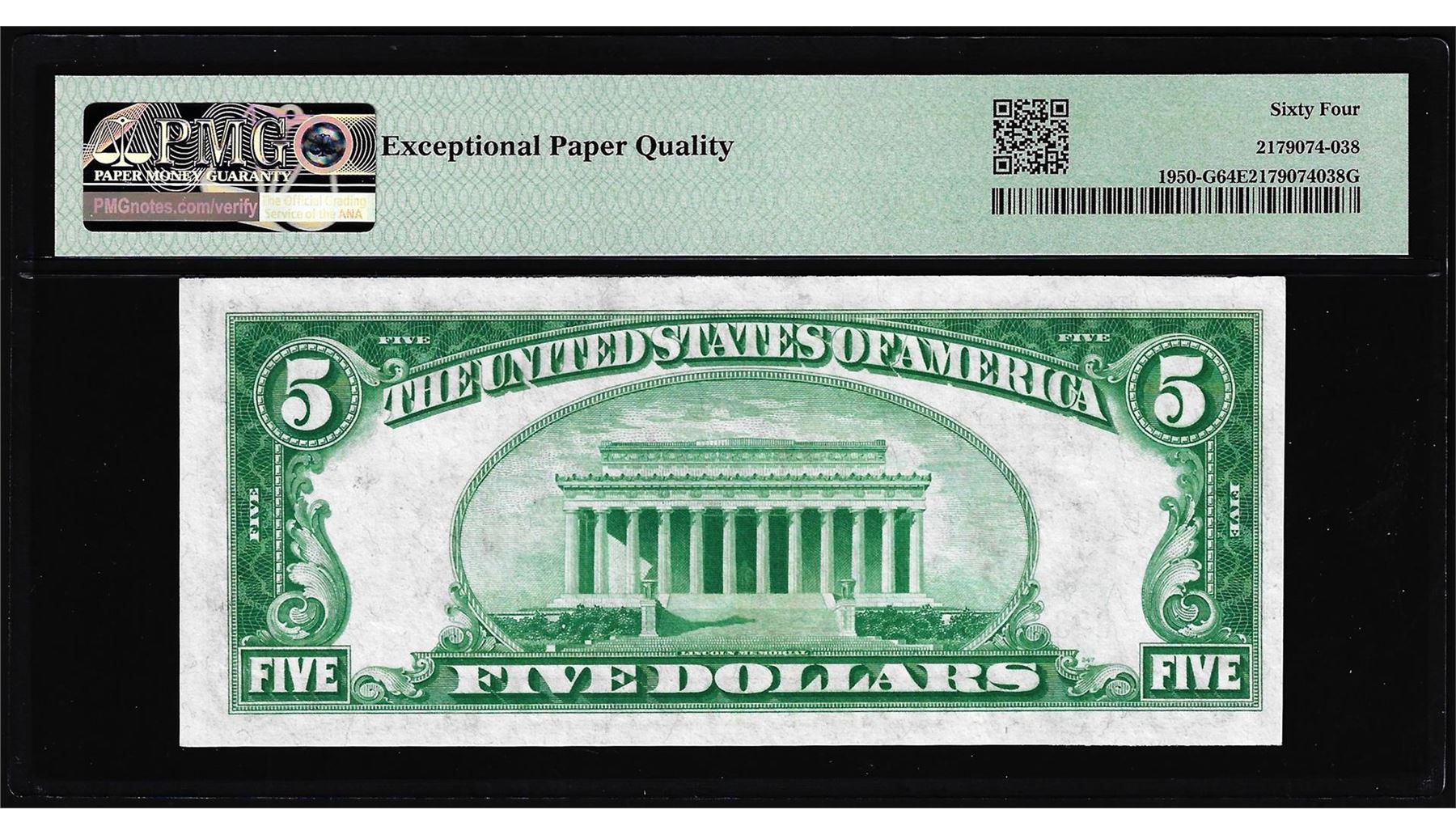 One 1928 $5 Federal Reserve Note Fr.1950-G PMG Choice Uncirculated 64EPQ. PMG Certified.