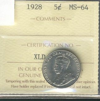 1928 5¢ ICCS MS-64.