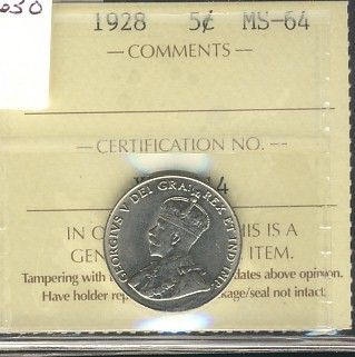 1928 5¢ ICCS MS-64.