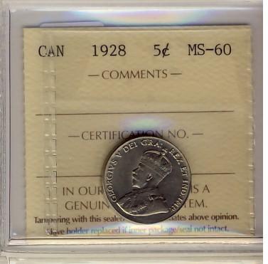 1928 5¢ ICCS MS60