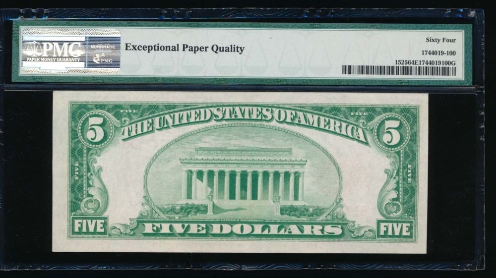 One 1928 $5 Legal Tender Note PMG 64EPQ.