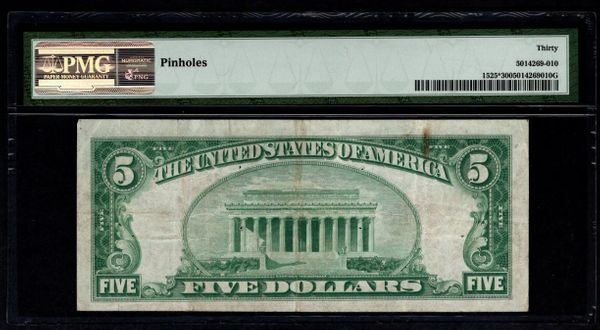 One 1928 $5 Legal Tender STAR Note PMG 30.