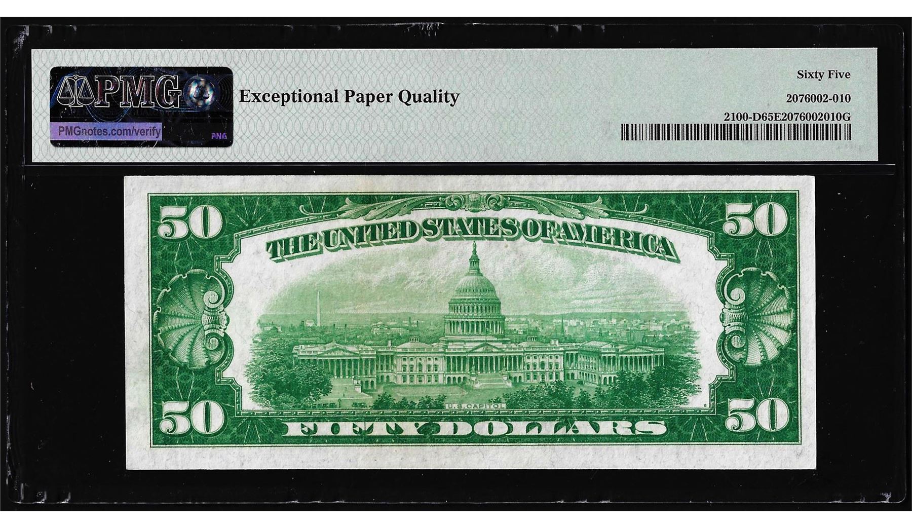 One 1928 $50 Federal Reserve Note Cleveland Fr.2100-D PMG Gem Uncirculated 65EPQ. PMG Certified.