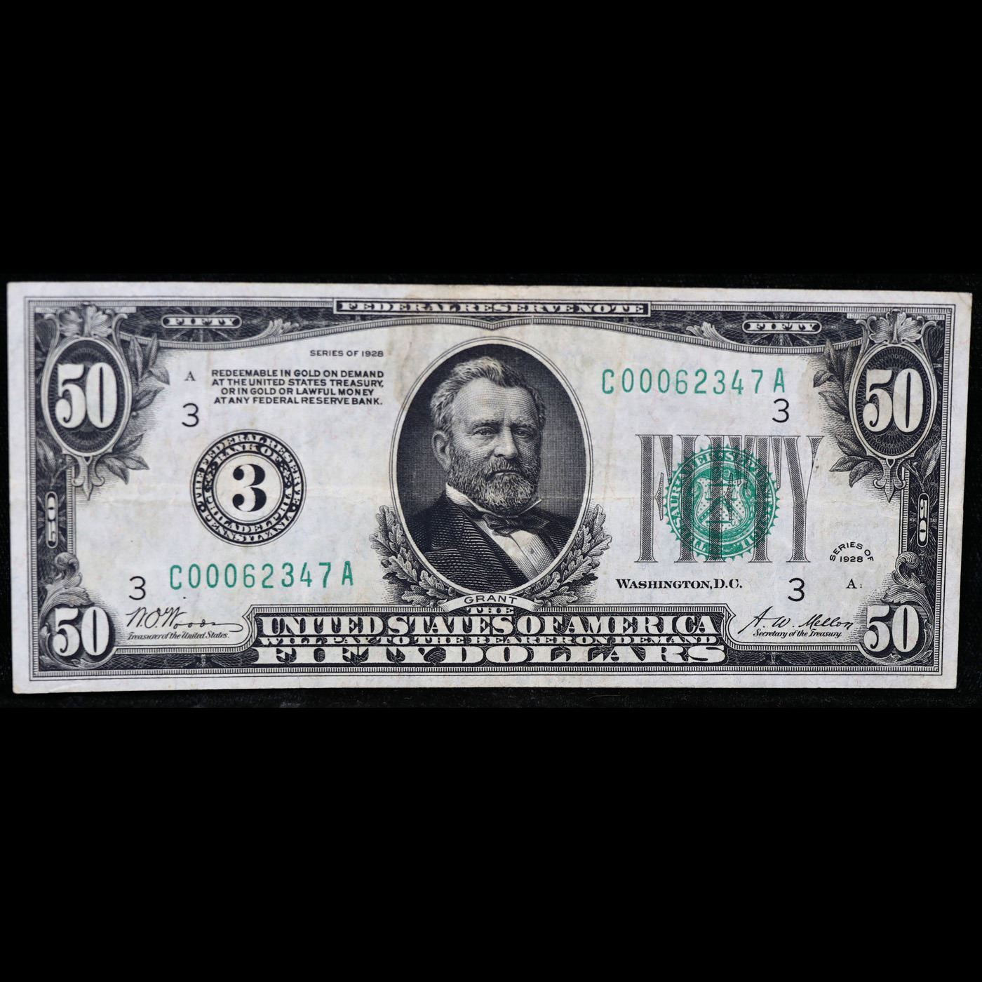 1928 $50 Federal Reseve Note Redeemable In Gold (Philadelphia, PA) Grades Choice AU/BU Slider